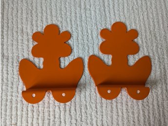 Nya krokar (två stycken) i form av en orange blomma i metall från Sagaform