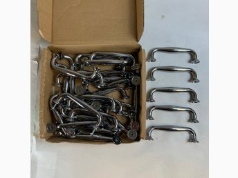 NYA OANVÄNDA DÖRRHANDTAG LÅDHANDTAG METALL BLANKA HANDTAG 13 cm kompl med skruv