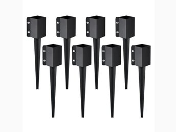 Markspik för staketstolpar – 8-pack, pulverlackerat stål