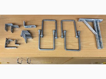 Stort parti gångjärn, beslag och krokar – blandade modeller och material