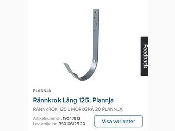 5st Plannja Rännkrok Lång 125, Mörkgrå