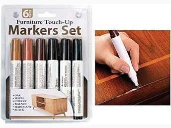 Sex (6) möbelmarkörer set med pennor för skavanker och skador på möbler