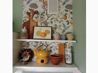 En rulle tapet / dekorplast med fåglar och frukter