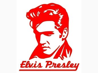 [ DEKAL ] ELVIS PRESLEY. Två st 15 x 13.2 cm. Röd.
