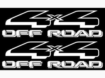 [ DEKAL ] 4x4 OFF ROAD. Två st. 30 x 8 cm. Vit