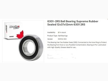2 st. 6301-2RS Kullager Supreme Gummität 12x37x12mm