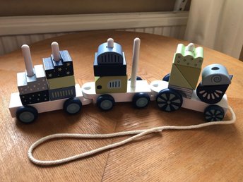 Trätåg med stapelbara klossar