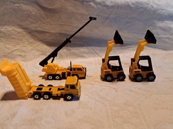 Ett set med leksaksfordon - Betongbil, dumper och en byggkran.