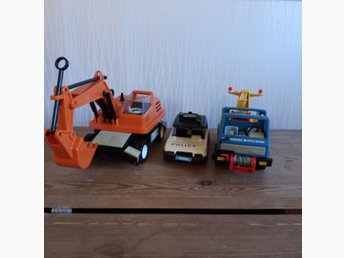 Playmobil. Leksaksfordon: Grävmaskin, Polisbil, Bärgningsbil