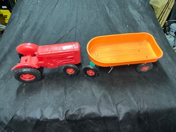 Leksakstraktor med vagn - Troligtvis -70 tal. Defekt