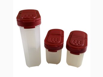 Tupperware 3 st Kryddburkar Plast Röd Lock Förvaring Kök