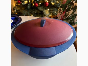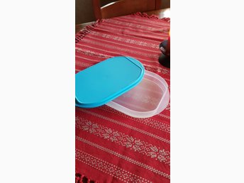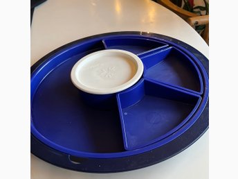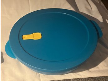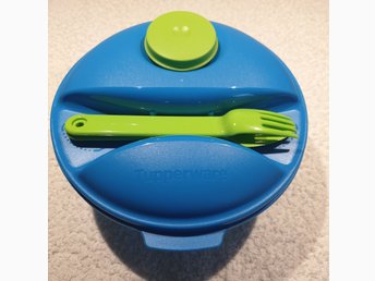 Blå Tupperware matlåda för mikrovågsugn med fack och lock