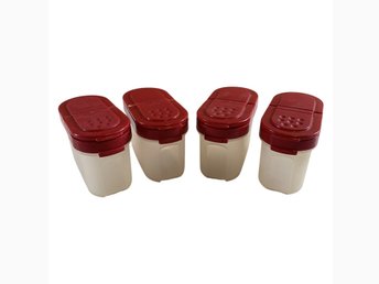 Tupperware 4 st Kryddburkar Plast Röd Vit Lock Förvaring Kök