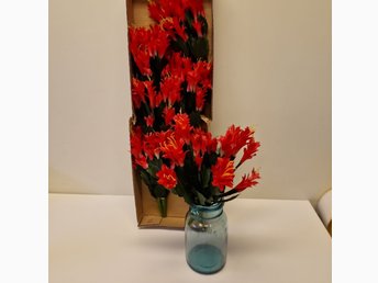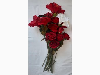 Konstgjorda 18st blommor i röd / vit / grön 43cm