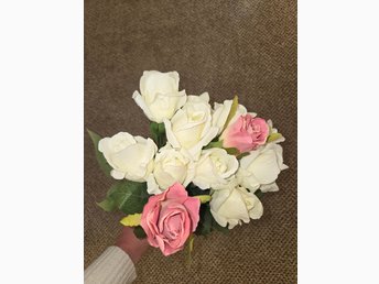 Konstgjorda rosor i bukett. Ros, dekoration, rosbukett, romantiskt, blommor.