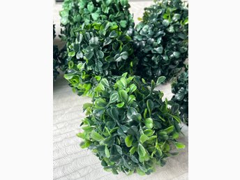 Denna produkt är en konstgjord buxbomboll med måtten cirka 12 cm.