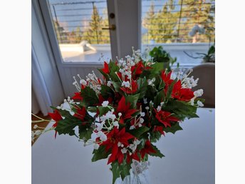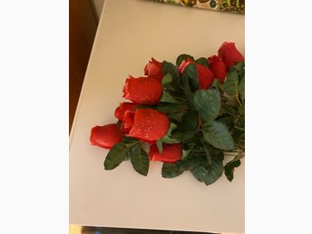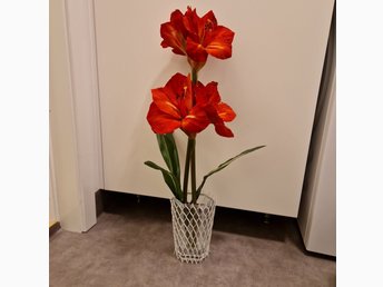 Konstgjorda 18st blommor i röd / vit / grön 43cm