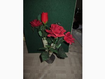 Konstgjord Rosbukett i 50 tals vas för bil.