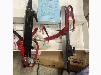 Gamla skridskor säljes som defekta eftersom ena spännet saknas och måste by