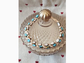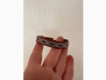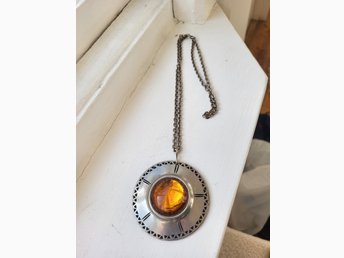 Vackert tennhalsband med bärnsten Casi handarbete Härjedalen