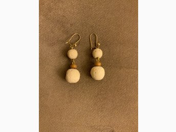 Örhängen med guldfärgade glaspärlor. Underbara handgjorda örhängen