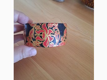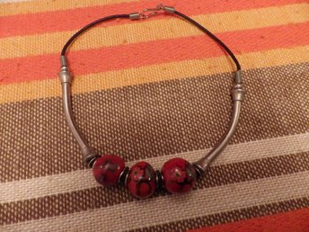 Läckert Halsband med röda målade kulor, läder och tennliknande metall, Ovanligt