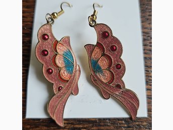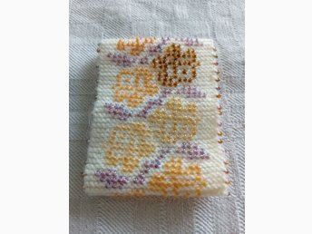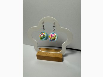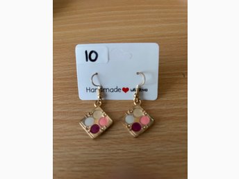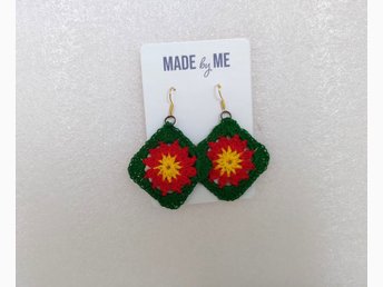 Handvirkade örhängen. Små söta Rutor med Blomma , för hål i öronen.