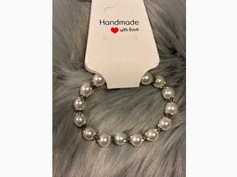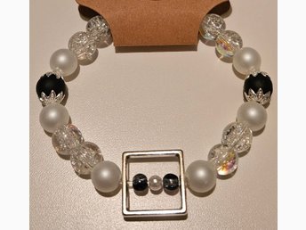 Armband odlade fina sötvattenspärlor. Vita + glas-accenter