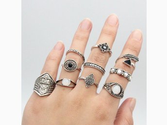 10st Ringar i vintagestil, pilspets och fjäder i silver Ringset kvinnor flickor