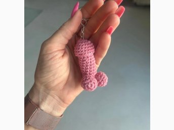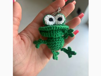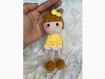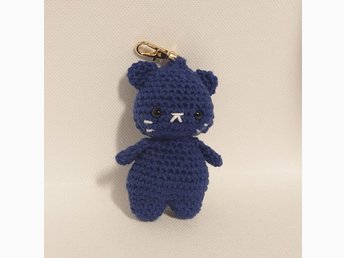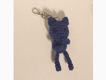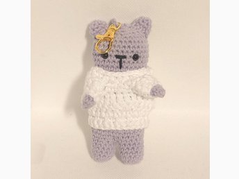 Virkat Nyckelhänge - Söt lila katt med vit tröja