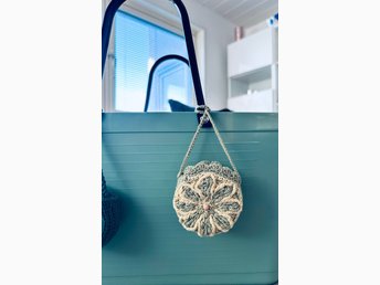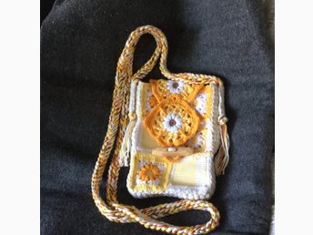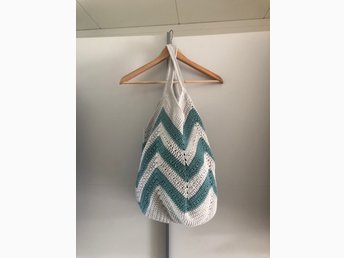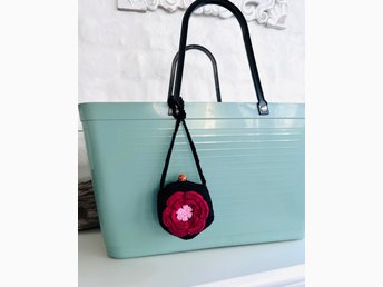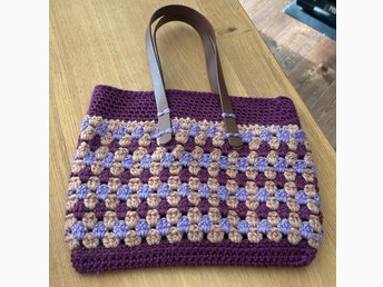 Väska, virkad, botten i PU-läder, handtag i PU-läder, ny/oanvänd