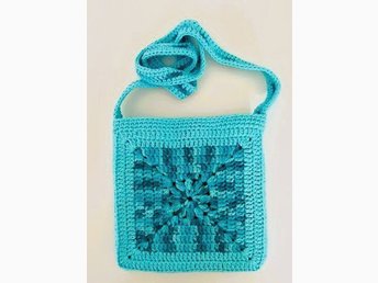 Söt Liten Handgjord Mjuk Virkad Turkos axelrems väska.