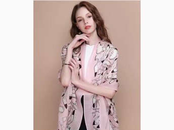 Blå, vit halsduk sjal stor scarf med stjärnor 105x105 cm