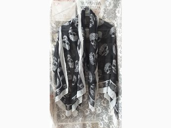 Svartvit sjal svart botten med vita dödskallar 110x180 cm