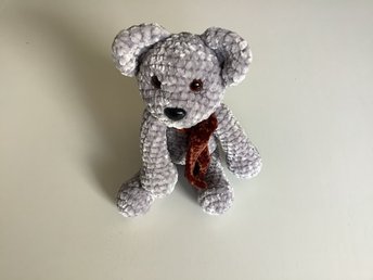 Handgjord virkad Grå nallebjörn med halsduk