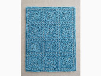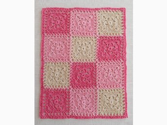 Virkad dockfilt med blommotiv, ca 27,5 x 36 cm, bomull