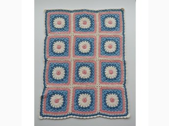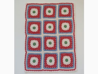 Virkad barnfilt med blommotiv, ca 58 x 72 cm, bomull
