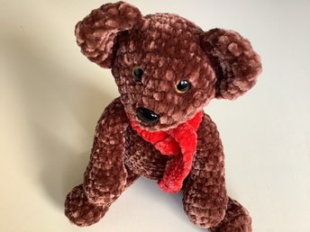 Handgjord virkad Brun nallebjörn med halsduk