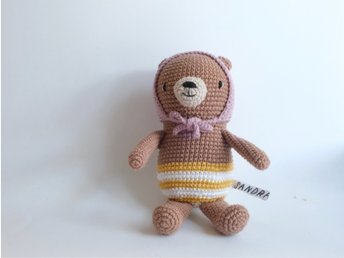 Virkad nalle med mössa handgjord present