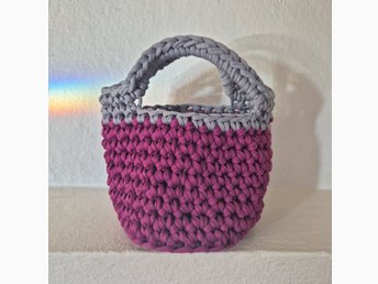 Virkad grå, lila väska