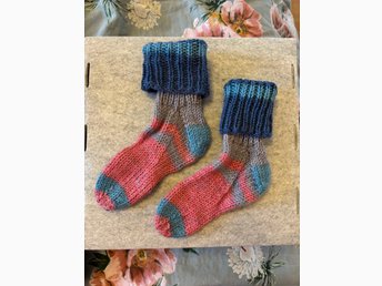 Blå raggarsockor / stickade sockor stlk 26 27