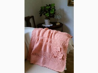 Ny virkad BABYFILT i aprikos, ca 88 x 72 cm.