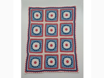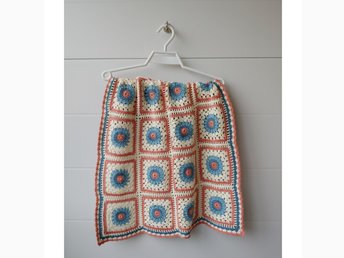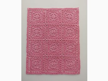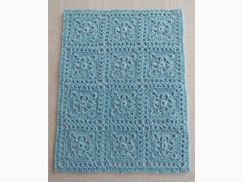Virkad dockfilt med blommotiv, ca 29 x 39 cm, bomull