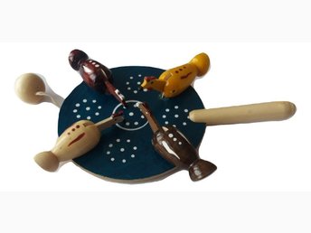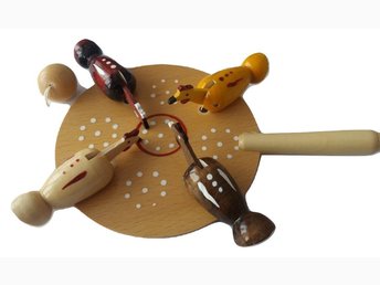 Hackleksak för kyckling i trä, höna som äter frön, naturlig handgjord leksak