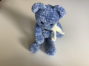 Handgjord virkad Blå nallebjörn med halsduk