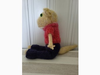 Handstickad katt med kläder