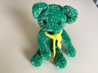 Handgjord virkad Grön Nallebjörn med Gul Halsduk
