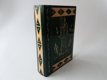 Grön magi trollkarl pussel bokhylla med hemligt fack inuti handgjord trälåda