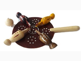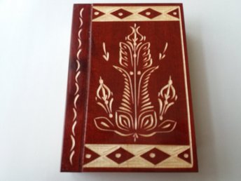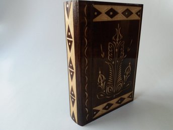 Brun magi trollkarl pussel bokhylla med hemligt fack inuti handgjord trälåda
