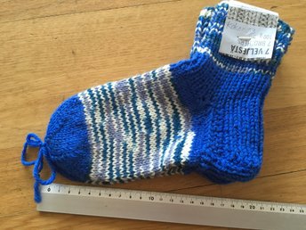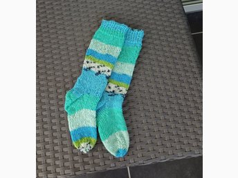 NYA Stickade sockar yllesockor blå-vita randiga, stl 34-35, SE MÅTT!